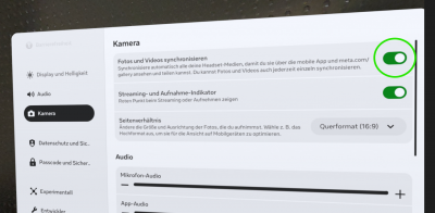 Du kannst direkt im Headset Bilder und Videos erstellen.