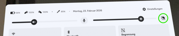 Die Schnelleinstellungen zeigen Dir die wichtigsten Einstellungen Deines Headsets. Du öffnest sie über einen Klick auf den Bereich der Uhr, des WLAN-Symbols und der Akkuanzeige: