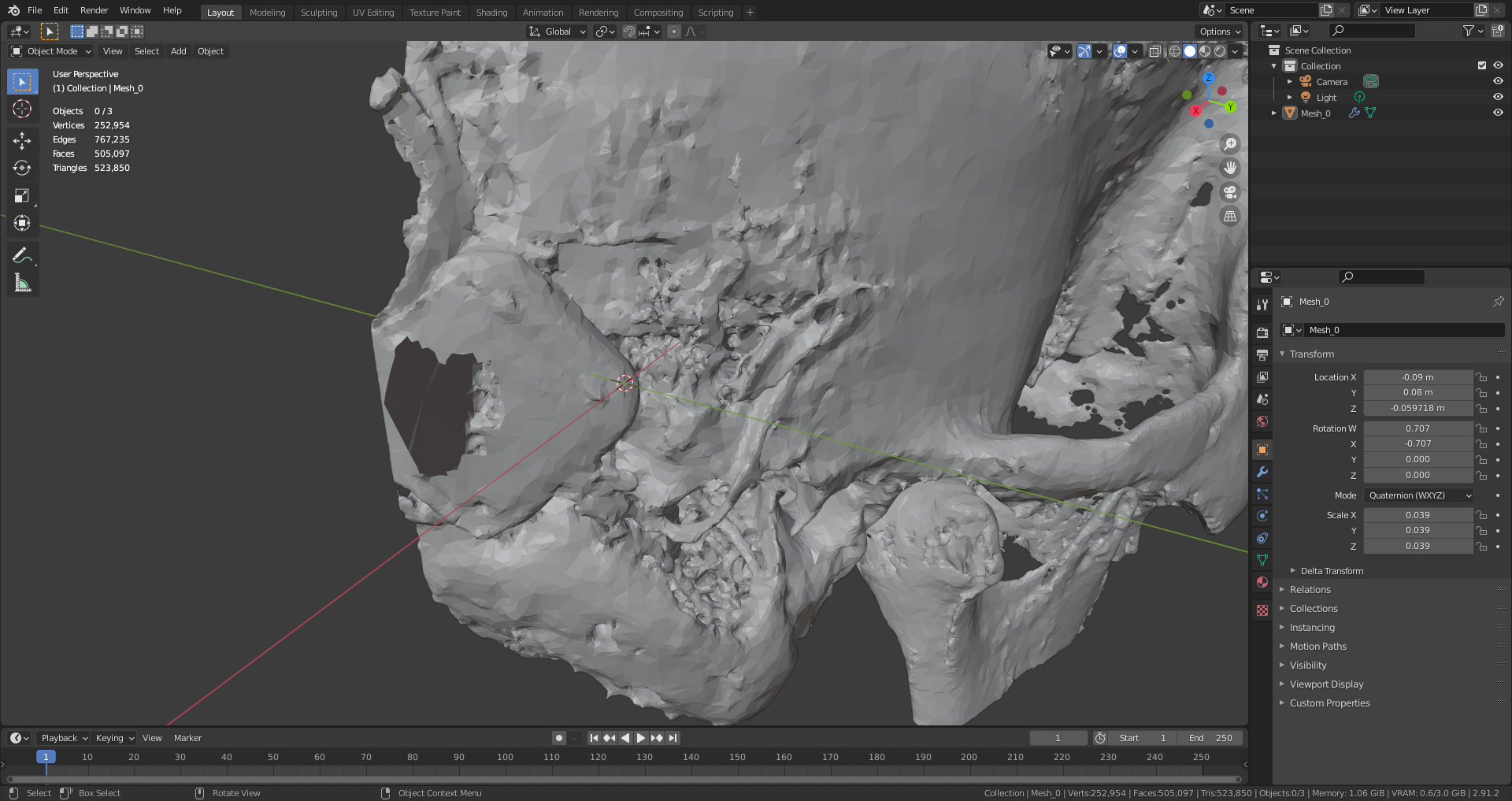 Aufgrund des Auflösungsfehlers des medizinischen Scanners wurde eine kleine Struktur erzeugt, die nicht Teil des eigentlichen Modells ist. Im Folgenden wird gezeigt, wie diese entfernt werden kann.