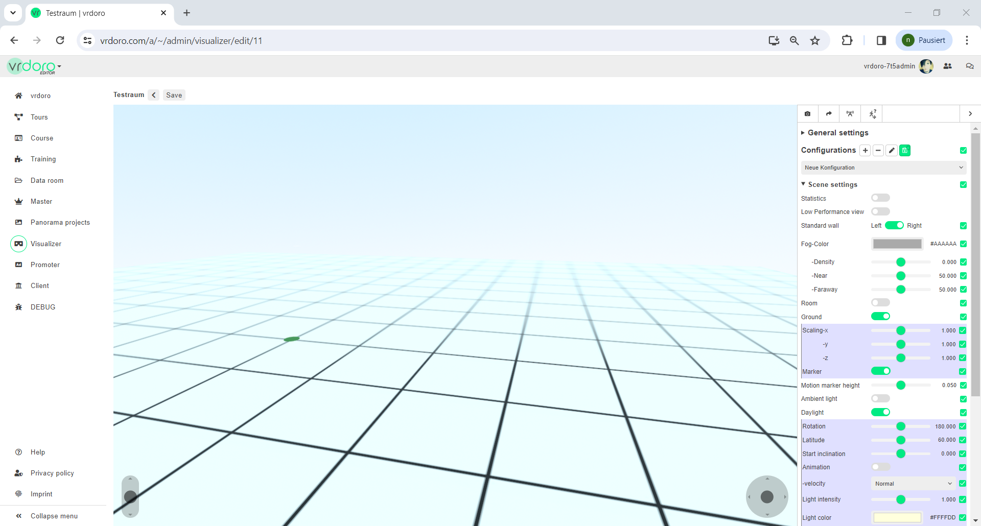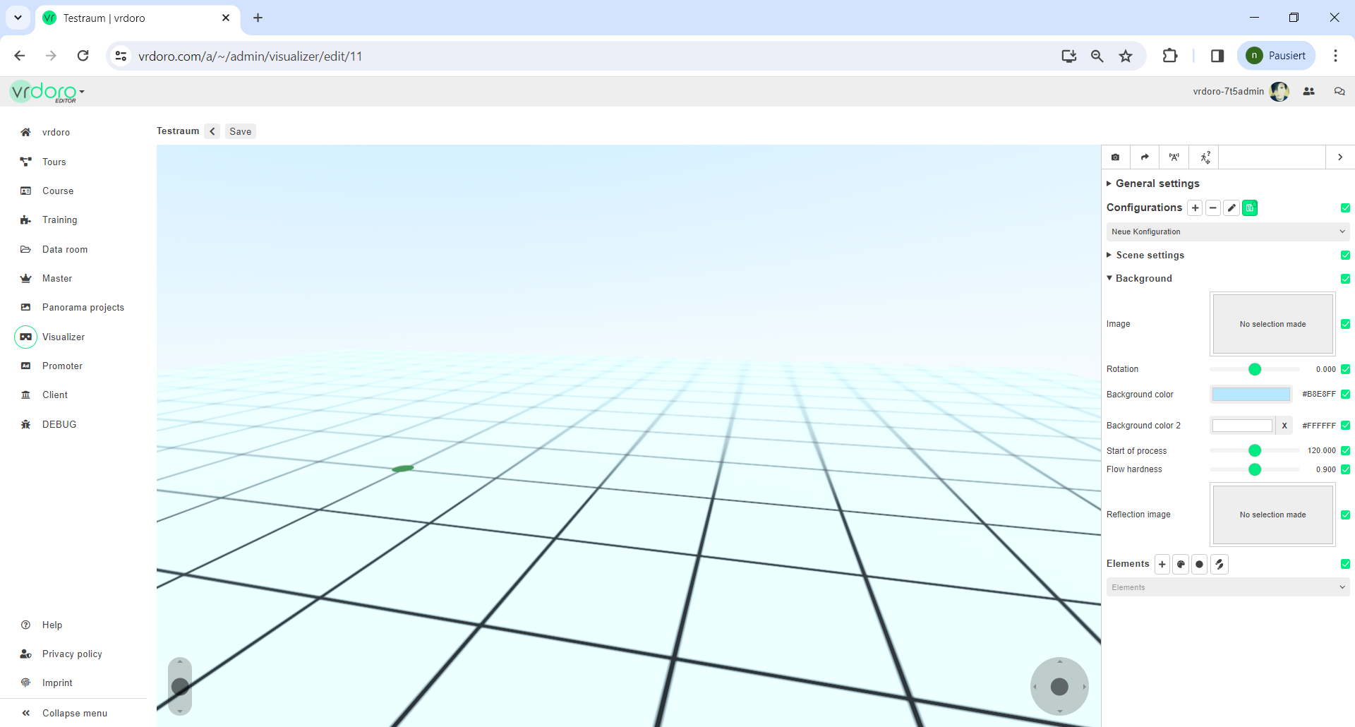 Scene settings can be configured with properties, as shown in the illustration below. For example, floor can be switched off so that the floor is not visible