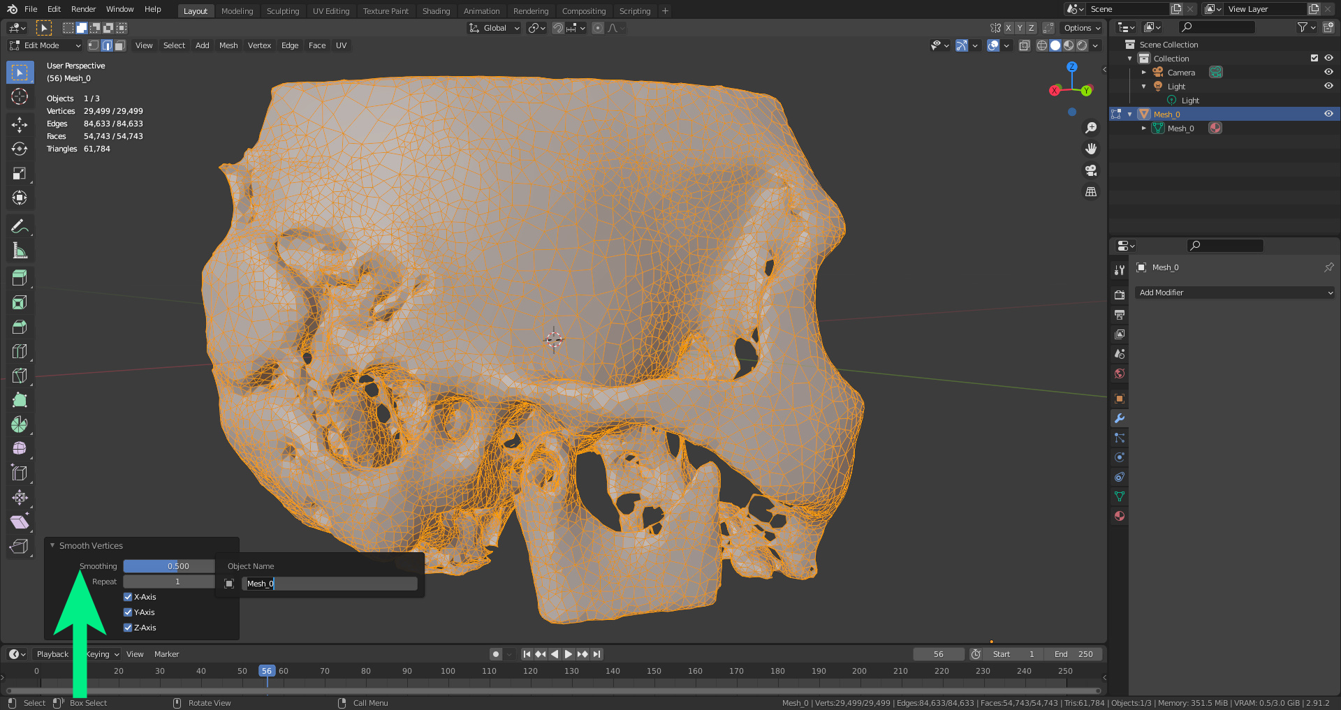Cette opération tente d'assembler des points d'angle en se basant sur la distance qui les sépare. Le résultat final est beaucoup plus lisse, même si cela a une grande influence sur la structure globale du maillage.