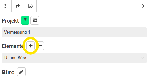Certains outils, tels que le marqueur de découpe, doivent être subordonnés à un autre outil, par exemple la mesure d'espace. Vous pouvez effectuer cette attribution pour l'outil « Marqueur de découpe » en l'insérant après avoir sélectionné un espace dans la liste. L'outil est alors attribué à l'espace.