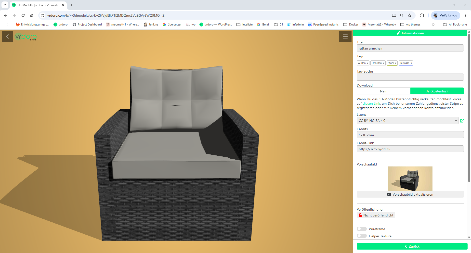 Die Ressourcen werden verwendet, um virtuelle VR-Inhalte zu erstellen. können veröffentlichtwerden. Veröffentlichte Modelle, werden allen Besuchern des vrdoro-store angezeigt. Nicht veröffentlichte Modelle, kann nur derjenige sehen, der das Modell hochgeladen hat.