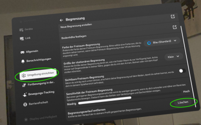 Virtual Reality (VR), zu Deutsch virtuelle Realität, ist eine computergenerierte, interaktive Umgebung, in die eine Person vollständig eintauchen kann. Mithilfe spezieller Geräte wie VR-Brillen wird die reale Welt vollständig durch eine simulierte ersetzt. Der Nutzer erlebt eine dreidimensionale, künstliche Umgebung, die alle Sinne ansprechen kann.-Modus kannst Du ja die reale Umgebung nicht sehen. Kurz vor dem Verlassen der Begrenzung bekommst Du daher so etwas wie einen virtuellen Käfig angezeigt, der die Grenze markiert.