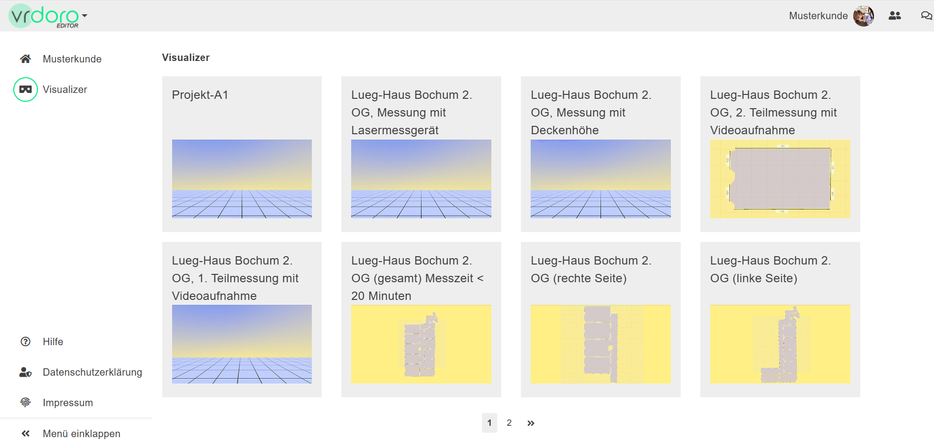 Der vrdoro-visualizer ist eine Web-Plattform, die Du über URLs aufrufen kannst. Der vrdoro-editor ist die Projektverwaltung. Mit diesem verwaltest und öffnest Du Deine visualizer-Projekte.